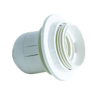 Weiße Lampenfassung mit Halbring, E27-Fassung.