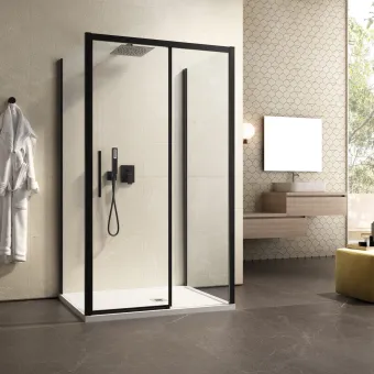 Dreiseitige Duschabtrennung mit schwarzen Lagoa-Trio-Profilen