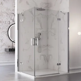 2-seitige Duschabtrennung mit 8 mm starken transparenten Glasschwingtüren