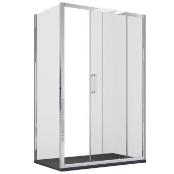 Zweiseitige Duschabtrennung, feste Seite plus Tür, verschiebbarer Vordereingang. Doppelseitige Duschabtrennung Agata...