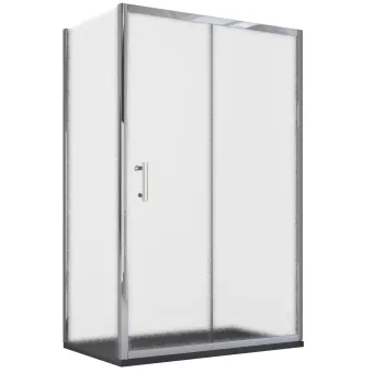 Schiebe-Eckduschabtrennung plus fester Seite, Höhe 190 cm, mattes Glas mit Federeffekt, Dicke 6 mm BIG