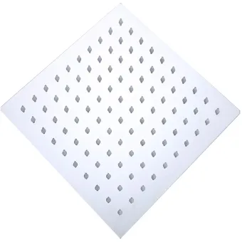 Quadratischer Duschkopf mit Anti-Kalk-Silikondüsen. Erhältlich in verschiedenen Größen 20x20, 25x25, 30x30 und 40x40. Außenprofil nur 2mm. Der sehr flache Duschkopf gleicht Wassermangel aus und sorgt für einen gleichmäßigen Strahl in allen Düsen