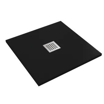 CHIC Duschwanne aus schwarzem Kunstharzmarmor mit zentralem Loch