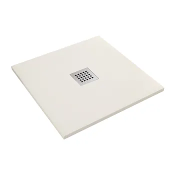 - Duschwanne in Schiefersteinoptik MINERAL MARMO, Farbe SABBIA RAL 1013. Mittelloch. Im Lieferumfang enthaltenes Zubehör: Abfluss und Grill aus Edelstahl.