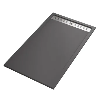 Duschwanne aus dunkelgrauem Harzmarmor mit seitlichem Abfluss