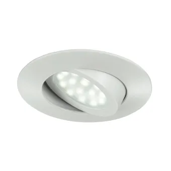 Runder Einbaustrahler , 9 cm Durchmesser, aus weißem Polycarbonat. Struktur bis 25° verstellbar . Treiber...
