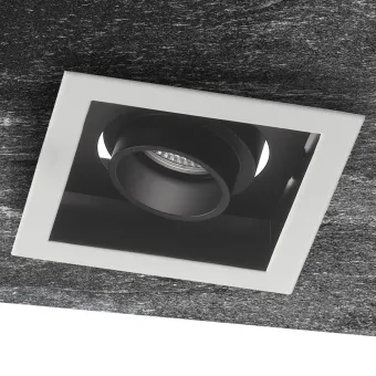 Quadratischer Einbaustrahler , 12x12 cm, mit weißem Rand und satinschwarzer Innenseite. Struktur in 4 Richtungen...