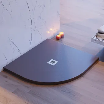 Halbrunde Duschwanne in ultraschlankem Braun mit den Maßen 80 x 80, 90 x 90 und 100 x 100 – Dicke 3 cm – umkehrbar...