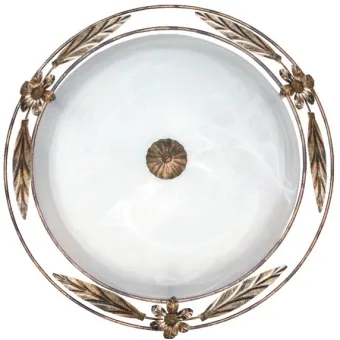 Runde Deckenleuchte , Durchmesser 50 cm, aus weißem Alabasterglas mit rostigem Metallrahmen mit Goldbürste. Die florale Verzierung des Rahmens wird komplett von Hand aufgeschweißt . Klassische Riccio- Lampe , die eine gute Beleuchtung bietet und gleichzeitig der Einrichtung Eleganz verleiht. 2 Halogenlampen nicht im Lieferumfang enthalten, 60 Watt, E27-Fassung. Siehe auch im Durchmesser 40 cm . Entdecken Sie die gesamte Riccio-Linie. Klicken Sie hier.