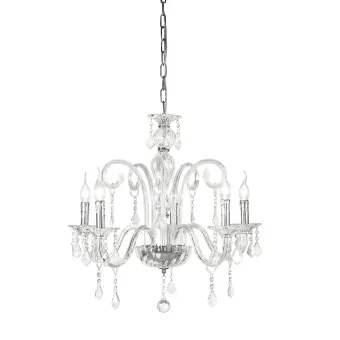 Höhenverstellbare Kettenaufhängung mit dekorierter Glasstruktur, K9 - Kristallanhängern und Chromoberflächen. Idealer Kronleuchter zur Beleuchtung geräumiger Umgebungen. Die Kristalllinie eignet sich für diejenigen, die eine klassische und elegante Einrichtung suchen. 5 Halogenlampen nicht im Lieferumfang enthalten, 40 Watt, E14-Fassung. Siehe auch in den Versionen 3 und 8 Licht . Entdecken Sie die gesamte Crystal-Linie. Klicken Sie hier.