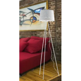 Stativ - Stehleuchte aus mattweißem Metall mit geschnitztem, spitzenartigem Lampenschirm. Stehleuchte mit...