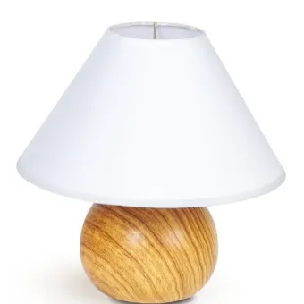 Lampenschirm mit abgerundetem Stiel aus bemalter Keramik in Kiefernholzoptik , Lampenschirm aus weißem Stoff. Tischlampe , die ein klassisches Design widerspiegelt. 40 Watt Halogenlampe nicht im Lieferumfang enthalten, E14-Fassung. Entdecken Sie auch die Rovere-Linie. Klicken Sie hier.