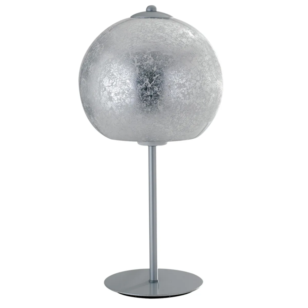 Tischleuchte 60W E27 silber GLAM. Moderner und eleganter Lichtpunkt mit edler Dekoration. Kugelförmiger Lampenschirm.