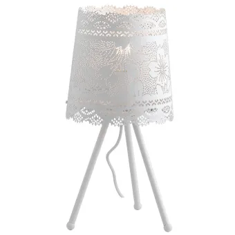 Stativ-Tischlampe, modern, mattweiß, perforierter Spitzenlampenschirm, E27