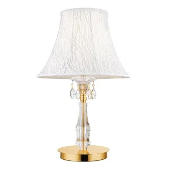 Drops Tischlampe K9 Kristall Gold-Finish Lampenschirm verzierter Stoff Classic E27