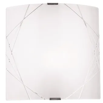 Quadratische Wandleuchte , 26x26 cm, aus satiniertem Glas mit eingraviertem transparentem geometrischem Dekor....