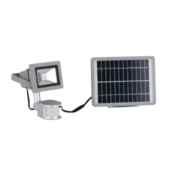 Projektor mit Bewegungssensor, 16 cm hoher und 11,5 cm breiter Struktur und polykristallinem Solarpanel. Eine LED-Glühbirne mit 9 Watt und 5000 Kelvin ist im Lieferumfang enthalten. LED-Projektor mit 1 9-Watt-COB-Glühbirne, wandmontierbar. Maße in cm HxL 16x11,5 Maße Solarpanel: 16,4x21. Leuchtmittel enthalten ja/nein: Ja Klasse A+ Kelvin 5000 Lumen 620. Farbe: Silber.
