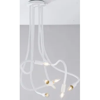 Weiße Deckenleuchte mit flexibler Metallstruktur, überzogen mit Silikon. Dank ihrer besonderen Struktur können Sie das Licht dorthin richten, wo Sie es benötigen. Lustige Lampe, ideal für Erwachsene und Kinder. 6 Halogenlampen nicht im Lieferumfang enthalten, 40 Watt, E14-Fassung. Siehe auch in den Farben Grau , Mehrfarbig und Schwarz . Entdecken Sie die gesamte Lover-Linie. Klicken Sie hier.