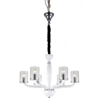 Kronleuchter aus weißem Glas, verchromte Oberfläche, modernes Interieur, E14