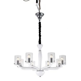 Moderner E14-Kronleuchter aus weißem Glas mit Chromoberflächen