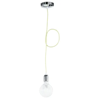 Gelbe Einzelleuchte mit verchromter Struktur. 60 Watt Halogenlampe, E27-Fassung, nicht im Lieferumfang enthalten. Auch in Schwarz-Weiß, Blau und Rot erhältlich. Pendelleuchte mit 1 60-Watt-E27-Fassung. Kann an der Decke montiert werden. Maße in cm HxL 150x12. Leuchtmittel im Lieferumfang enthalten ja/nein: Nein. Kompatibel mit LED- oder Halogenleuchtmitteln. Gelbe Farbe.