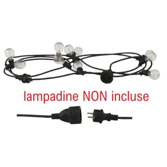 Elektrisches String-Kabel mit 10 E14-Glühbirnenanschlüssen, max. 25 W. Länge 5 metri.Lampadine Leuchtmittel nicht im Lieferumfang enthalten. Ideal für den Außenbereich.