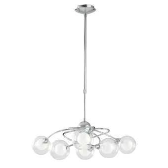 Pendelleuchte 28W 6XG9 mit sechs Emissionen Chrom POST. Modernes Design, verchromte Struktur mit kugelförmigen Diffusoren.