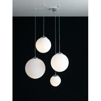 Aus der Zubehörlinie für die Innenbeleuchtung: Pendelleuchte Modell Town. Ein Lichtpunkt mit einem modernen, nüchternen und essentiellen Stil, der dank seines undurchsichtigen Diffusors jede Umgebung, in der er platziert werden soll, homogen beleuchtet. Die Kugelform trägt dazu bei, die visuelle Wirkung zu reduzieren, auch dank des besonderen ausziehbaren Sockels, der sich harmonisch in die umgebende Einrichtung einfügt und gleichzeitig für eine wirkungsvolle Beleuchtung sorgt. Satinweiße Farbe, glänzend verchromte Metallaufhängung. Verstellbares Kabel.