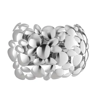 Aus der Linie des Zubehörs für Außenbeleuchtung: Wandleuchten der GRAPE-Serie. Einzigartiges und modernes Design für diese Kollektion, mit einer Metallstruktur, die an die Form von Steinen erinnert und interessante Licht- und Schattenspiele in die Umgebung projiziert, für raffinierte und persönliche Atmosphären, die gut zu jeder Art von Möbeln und Räumen passen. Chromfarbe.