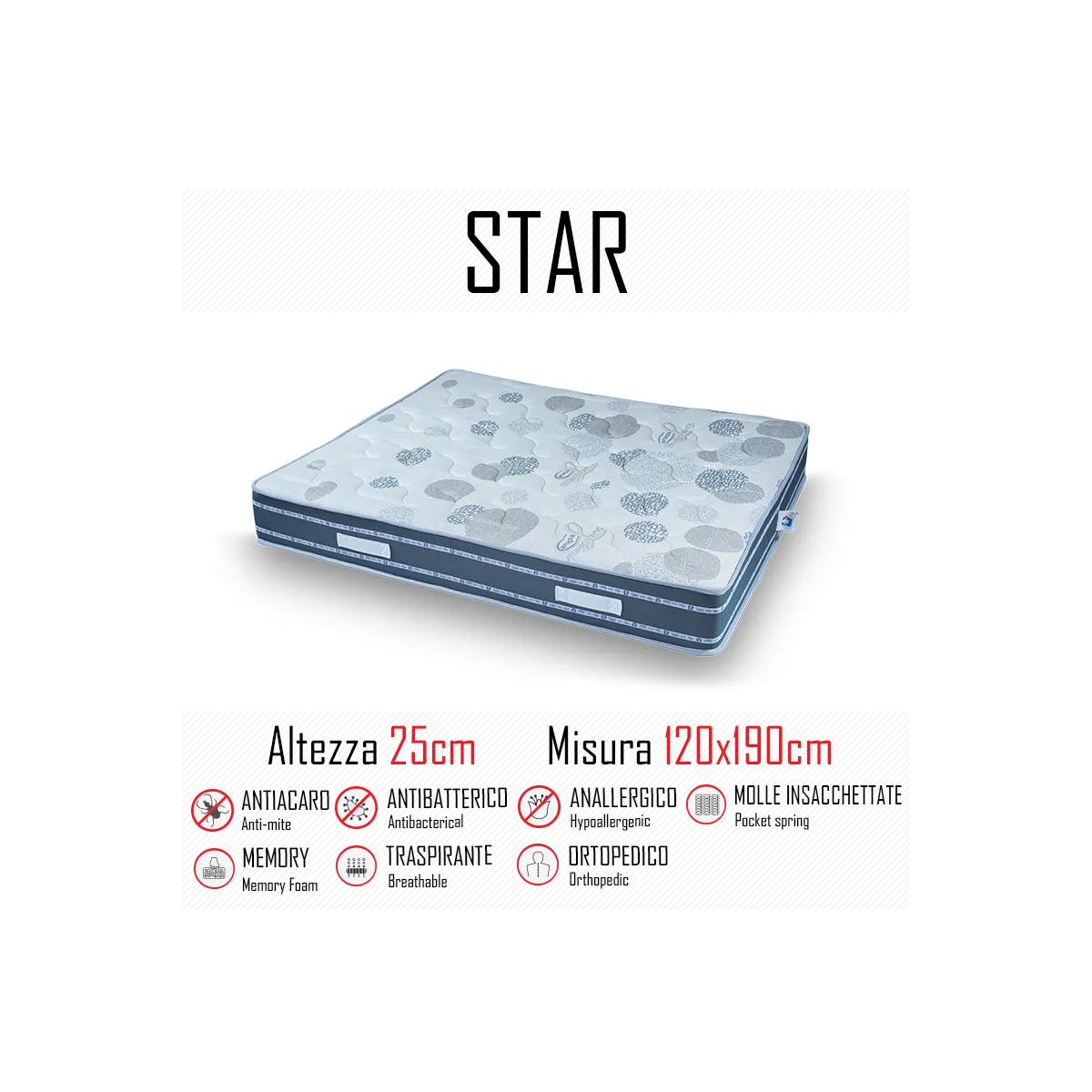 Star-Matratze 120 x 190 mit unabhängigen Federn und Memory-Funktion, 25 cm hoch