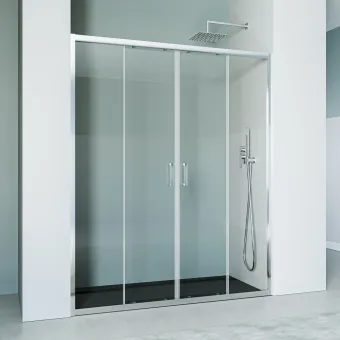 Duschtür mit verchromten Profilen aus 6 mm starkem, transparentem, gehärtetem Sicherheitsglas. Umkehrbare rechte oder linke Duschabtrennung. Geeignet für den Einbau auf Bodenebene oder auf einer Duschwanne, doppelte obere und untere Lagerung. Schnellverschluss für einfache Reinigung. Flache verchromte Profile