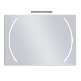 Von hinten beleuchteter Badezimmerspiegel mit externer LED-Lampe in raffiniertem und modernem Design. Zwei LED-Halbkreise runden den Spiegel modern und elegant ab. Die LED-Lampe benötigt keinen Transformator. Der Spiegelrahmen ermöglicht eine vertikale oder horizontale Montage