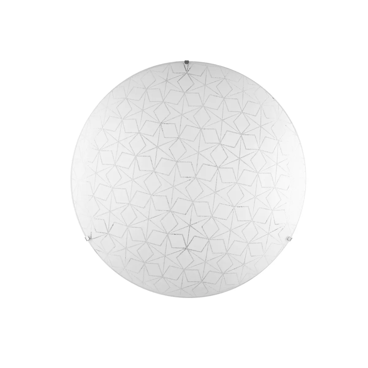 Collezione(Plafoniere + Applique) realizzata in vetro bianco con decori a stella in graniglia e ganci cromo.