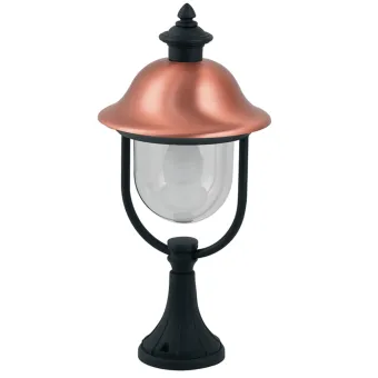 Bodenlaterne für den Außenbereich, 60 W, E27, Schwarz und Kupfer, Wien. Liberty-Lampe aus schwarzem Aluminiumdruckguss und Kupferoberflächen, mit Diffusor.