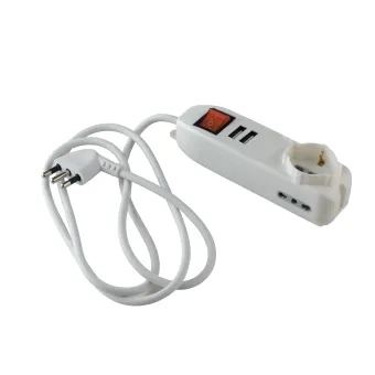 Adaptateur multiprise avec interrupteur marche / arrêt avec 1 prise scuko, 2 prises latérales by-pass, 2 câbles USB 2,1 et 1,5 m