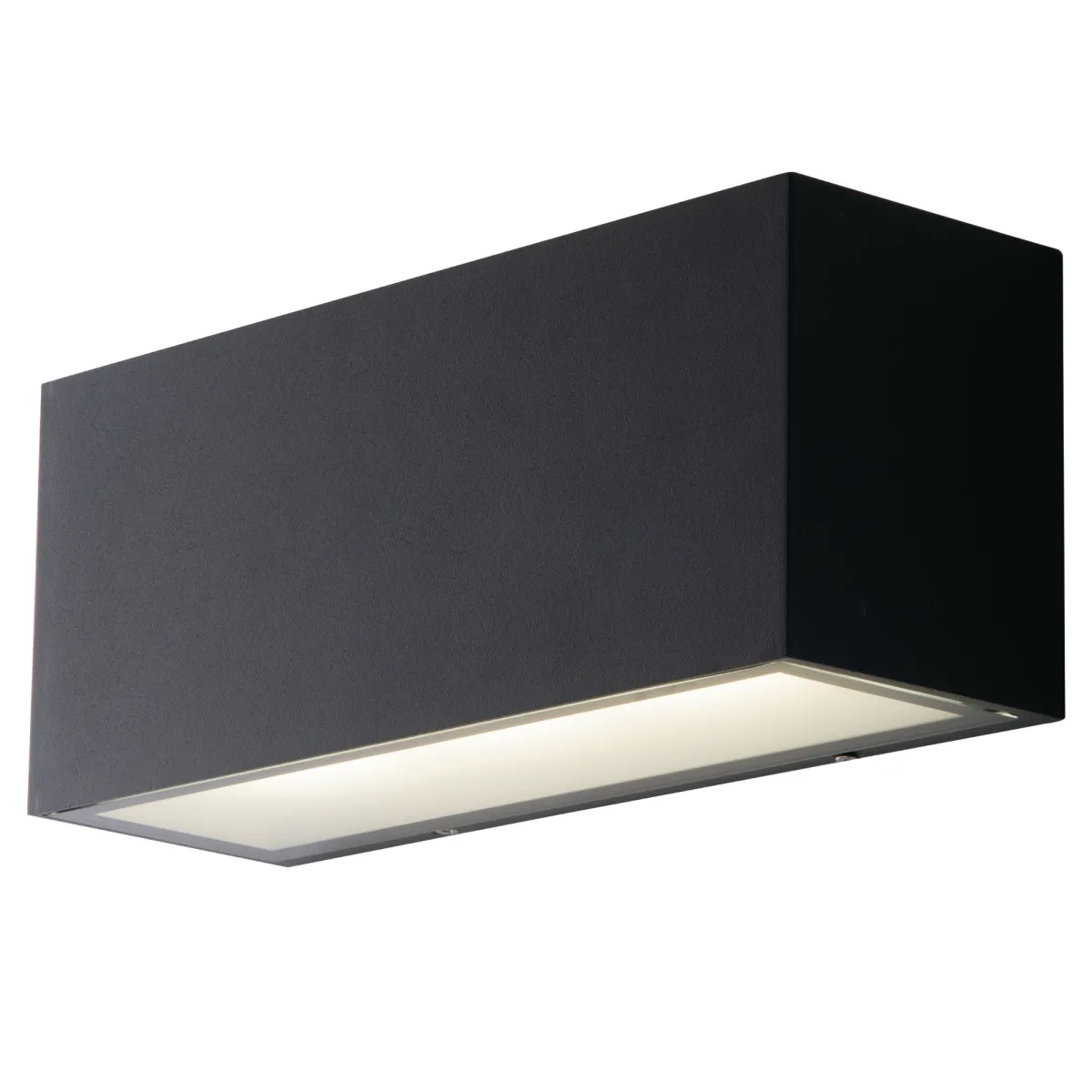 De la ligne d'accessoires pour l'éclairage extérieur, applique murale LED à double émission, modèle Box. Des lignes épurées et un design essentiel caractérisent ce point de lunce avec une forme discrète mais avec une grande fonctionnalité, grâce à la double émission de deux faisceaux lumineux diamétralement opposés, d'une largeur de 90 ° chacun qui permettent donc de diffuser la lumière uniquement là où elle est vraiment nécessaire, sans dispersion . Finition anthracite.
