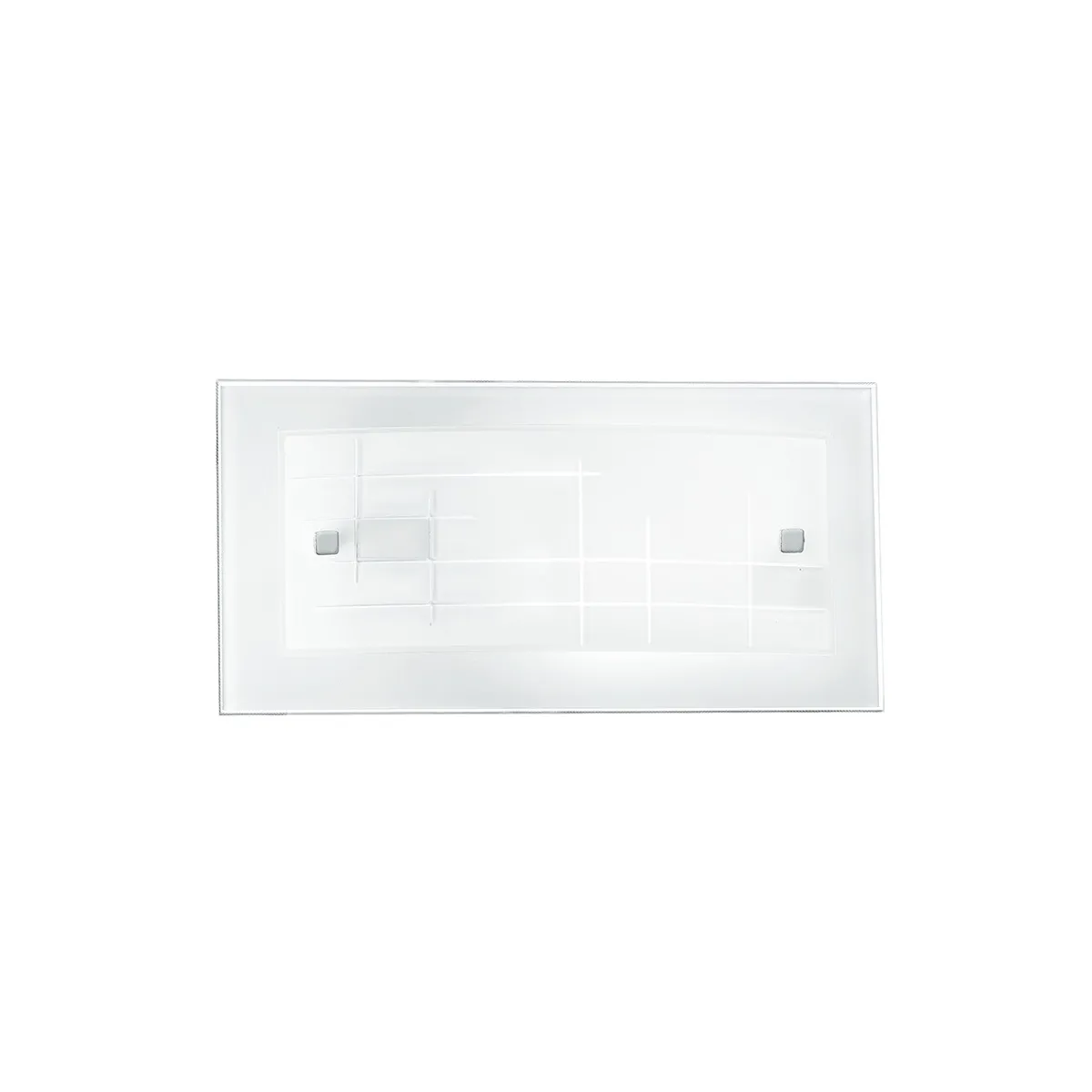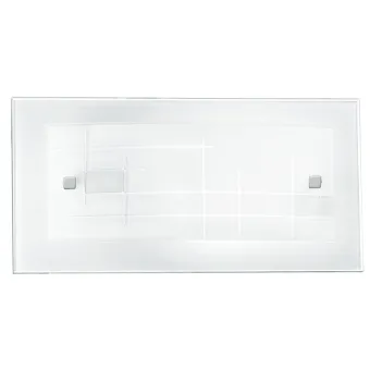 Applique en verre blanc avec cadre et décor à carreaux, avec une lumière. Ampoule halogène E27 de 60 watts, non incluse. Applique avec 1 douille E27 de 60 W. Montage mural. Mesure en cm HxL 15x30. Ampoules incluses oui / non: Non. Compatible avec les ampoules LED ou halogènes. Couleur blanche.