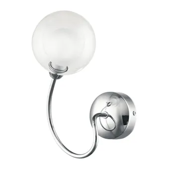 Applique avec abat-jour en verre sphérique, structure en métal chromé, lumière unique. Ampoule halogène G9, 28 watts chacune, incluse. Applique murale halogène avec 1 ampoule G9 de 28 W. Montage mural. Mesure en cm HxL 15x24. Ampoules incluses oui / non: Oui à partir de 3500 Kelvin. Couleur: Chrome. Deuxième couleur: transparent.