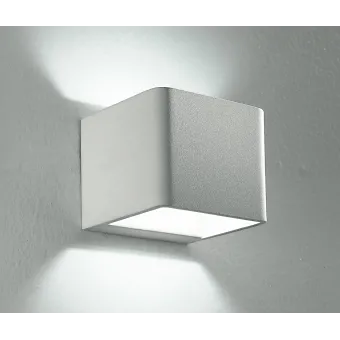 Applique cubique, 10 cm de haut et 8 cm de large, en aluminium blanc avec diffusion de lumière supérieure et inférieure, avec une seule lumière. Ampoule LED 6 watts et 3500 kelvin, incluse.