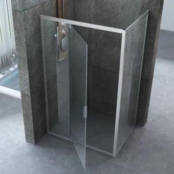 Cabine de douche avec deux côtés, un fixe et un pivotant ouvrant à l'intérieur et à l'extérieur en verre trempé de...