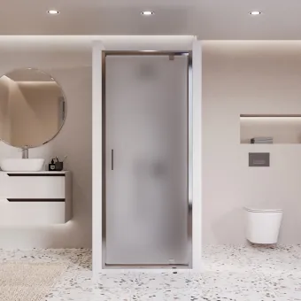 La porte de douche Adèle pour alcôves allie style et fonctionnalité. Grâce à son ouverture pivotante, elle offre un large accès tout en occupant peu d'espace en poussant une partie de la porte dans le receveur. Elle garantit une étanchéité parfaite, minutieusement testée. Les charnières en acier inoxydable garantissent durabilité et résistance. Réversible, elle s'installe avec la poignée à droite ou à gauche. Elle s'adapte aux murs non carrés grâce aux profilés de compensation inclus. Le verre trempé dépoli de 6 mm préserve l'intimité et masque le calcaire, avec un traitement anticalcaire pour un nettoyage facile.