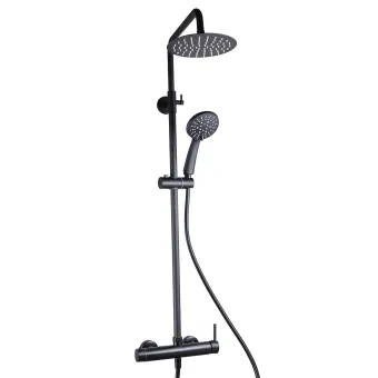 La colonne de douche Piave est la solution parfaite pour ceux qui veulent une expérience de douche relaxante et confortable. Fabriqué en laiton noir de haute qualité. Le pomme de douche noir 20 cm est en acier inoxydable anticalcaire et offre un jet d'eau agréable et régulier. La colonne de douche Piave est également réglable en hauteur de 90 à 140 cm, ce qui la rend adaptée à tout type de salle de bain.