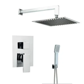 Kit de douche complet avec mitigeur chromé intégré avec pomme de douche 25x25. Douchette à main en ABS chromé 7,1...