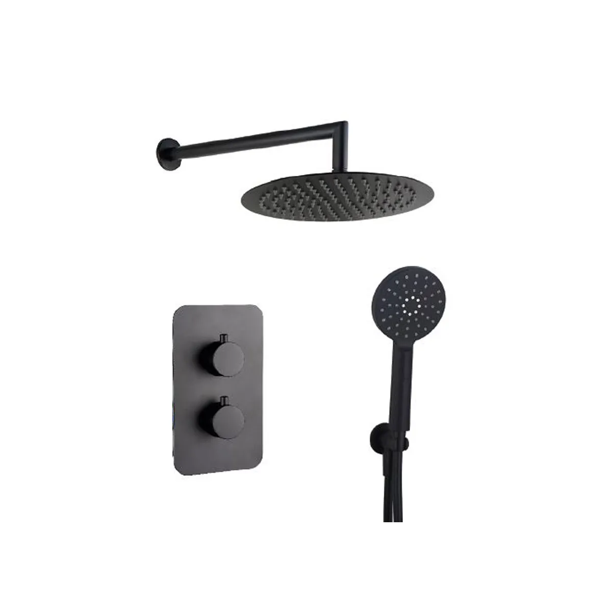 Kit de douche thermostatique noir 5 pièces : mitigeur, bras, pommeau de douche 25 mm, douchette à main