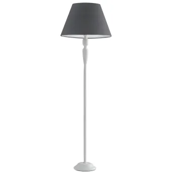 Lampadaire en métal blanc avec abat-jour en tissu gris. Lampe au sol Fable de la forme classique et élancé,...