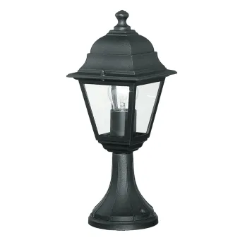Mât d'extérieur en aluminium moulé sous pression, couleur anthracite, hauteur 39 cm et largeur 15 cm, avec une lumière, avec diffuseur en verre transparent. Ampoule halogène 40 watts, douille E27, non incluse. Également disponible en blanc.