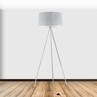 Lampadaire Trois pieds blanc avec structure en métal et abat-jour en tissu. Équipé avec bouton allumage Manuel. Lampe de terre qui offre un bon éclairage et en même temps meuble. Ligne Marilyn idéal pour donner une touche moderne à l'environnement. Une lampe halogène de 60 watts non incluse, douille E27. Voir aussi en couleurs gris est noir. Découvrez toute la ligne Marilyn, Cliquez ici.
