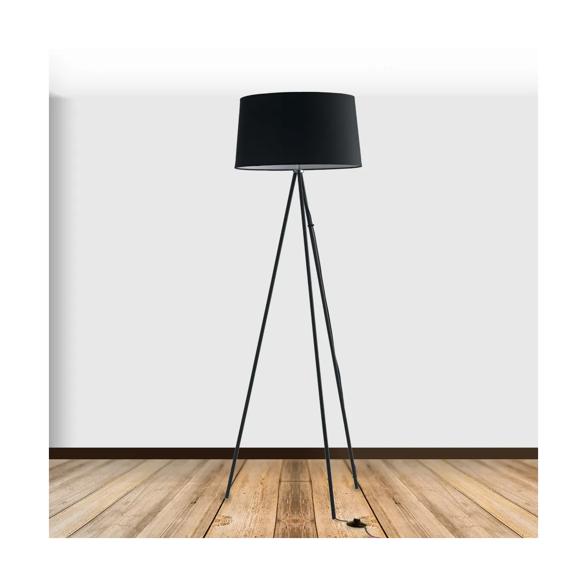 Lampadaire trépied minimaliste abat-jour en tissu métal noir Lampadaire moderne E27