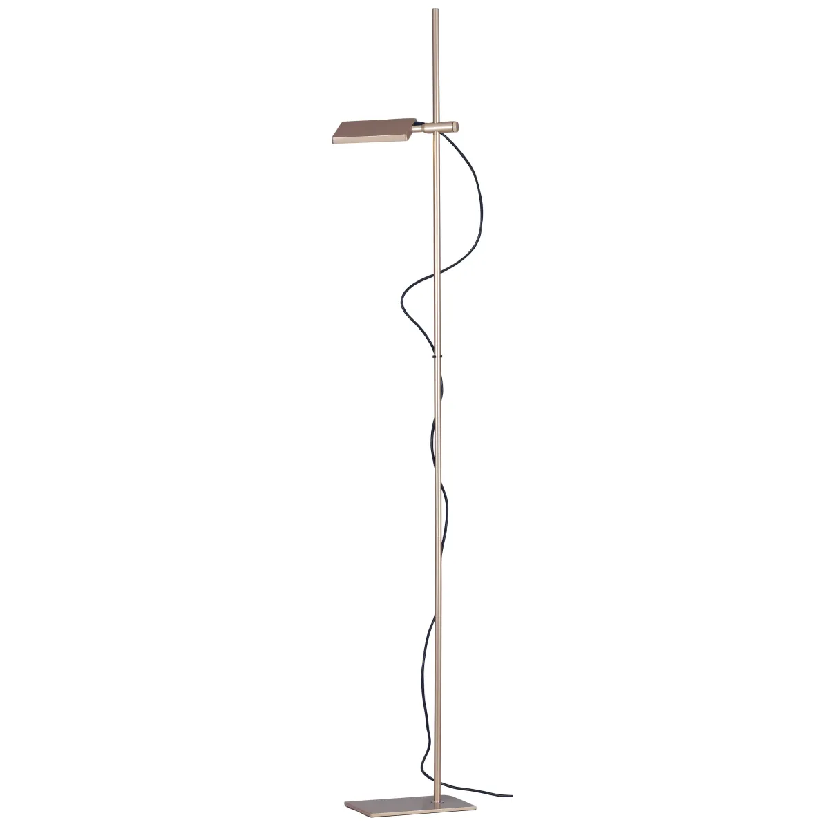 Lampadaire livre d'or avec structure en métal et lumière réglable en hauteur. Peut être installé à côté du bureau. Ampoule led 15 watts et 3200 kelvin incluse. Également disponible en blanc, gris et noir. Lampadaire LED avec 1 ampoule de 15 W. Installable au sol. Mesure en cm HxLxP 182x25x16. Ampoule non remplaçable. Ampoules incluses oui / non: Oui à partir de 1300 Lumen 3200 Kelvin. Couleur or.