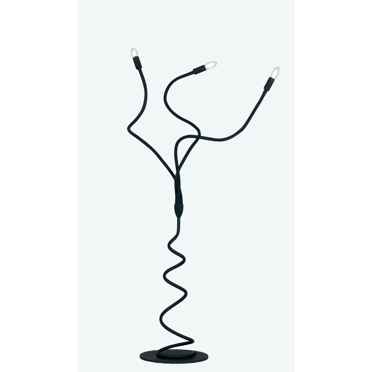 Lampadaire de terre souple en métal recouvert de silicone noir. Grâce à structure pliante vous pouvez diriger la lumière là où vous en avez besoin. Idéal comme lampe de lecture ça donne une touche moderne à l'environnement. 3 ampoules halogènes non incluses de 40 watts, douille E14. Voir aussi en couleur blanc. Découvrez toute la gamme Lover, cliquez ici.